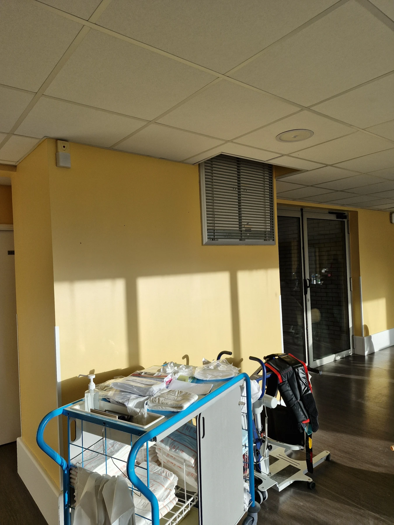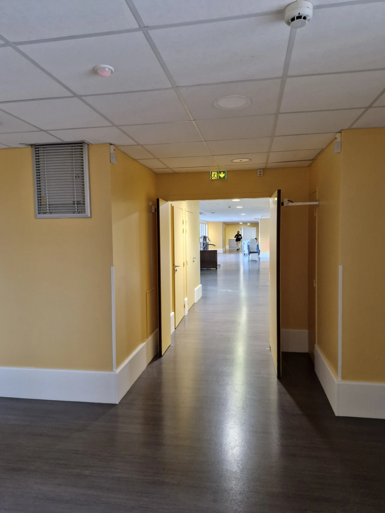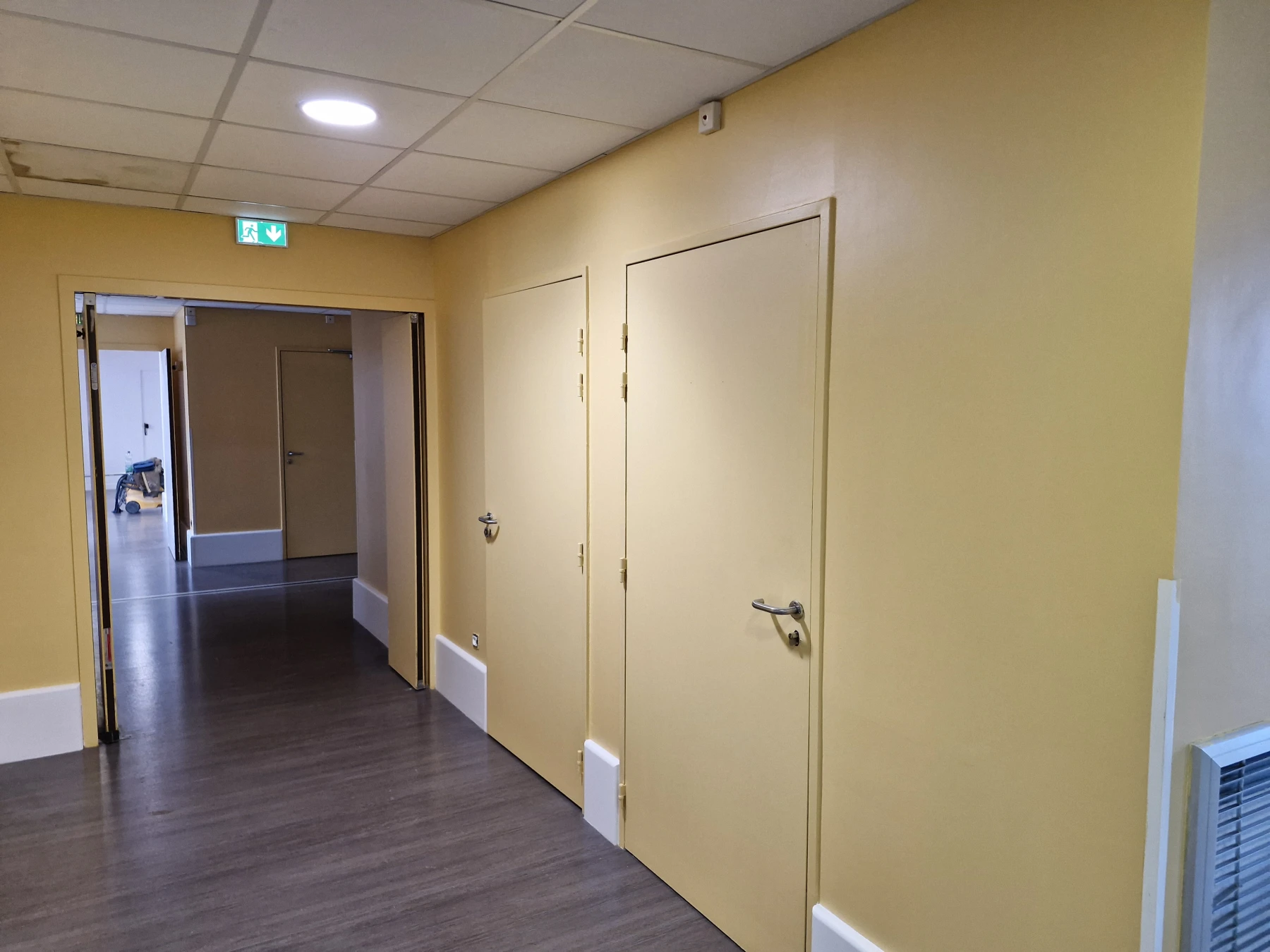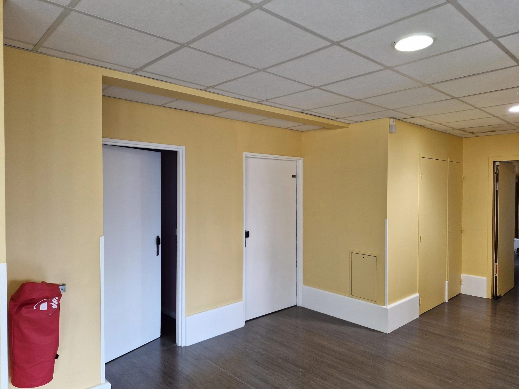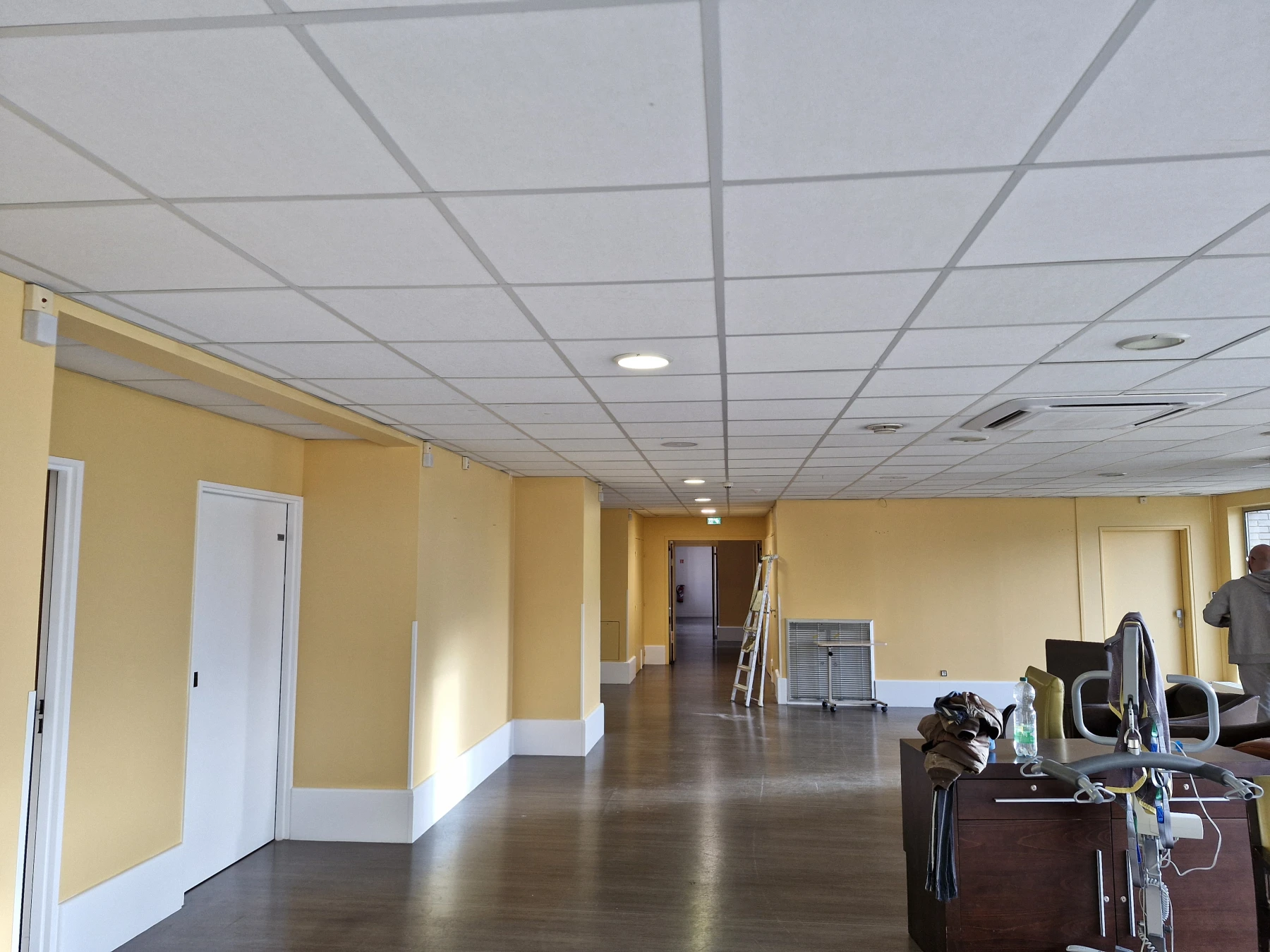 Prestations: Ponçage / plusieurs Révision des Supports/ plus de 40 portes remise en état / mise en peinture de plus de 350m² de murs / organisations avec le services de L'EHPAD POUR LES PATIENTS .