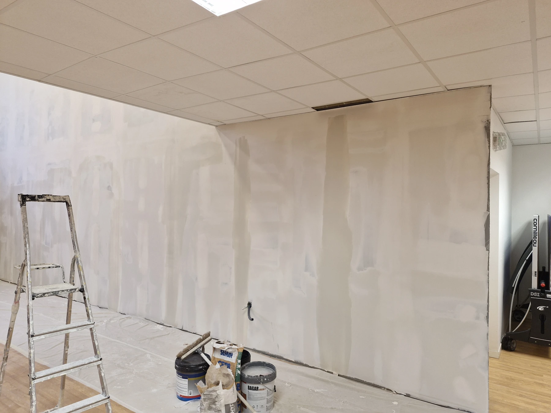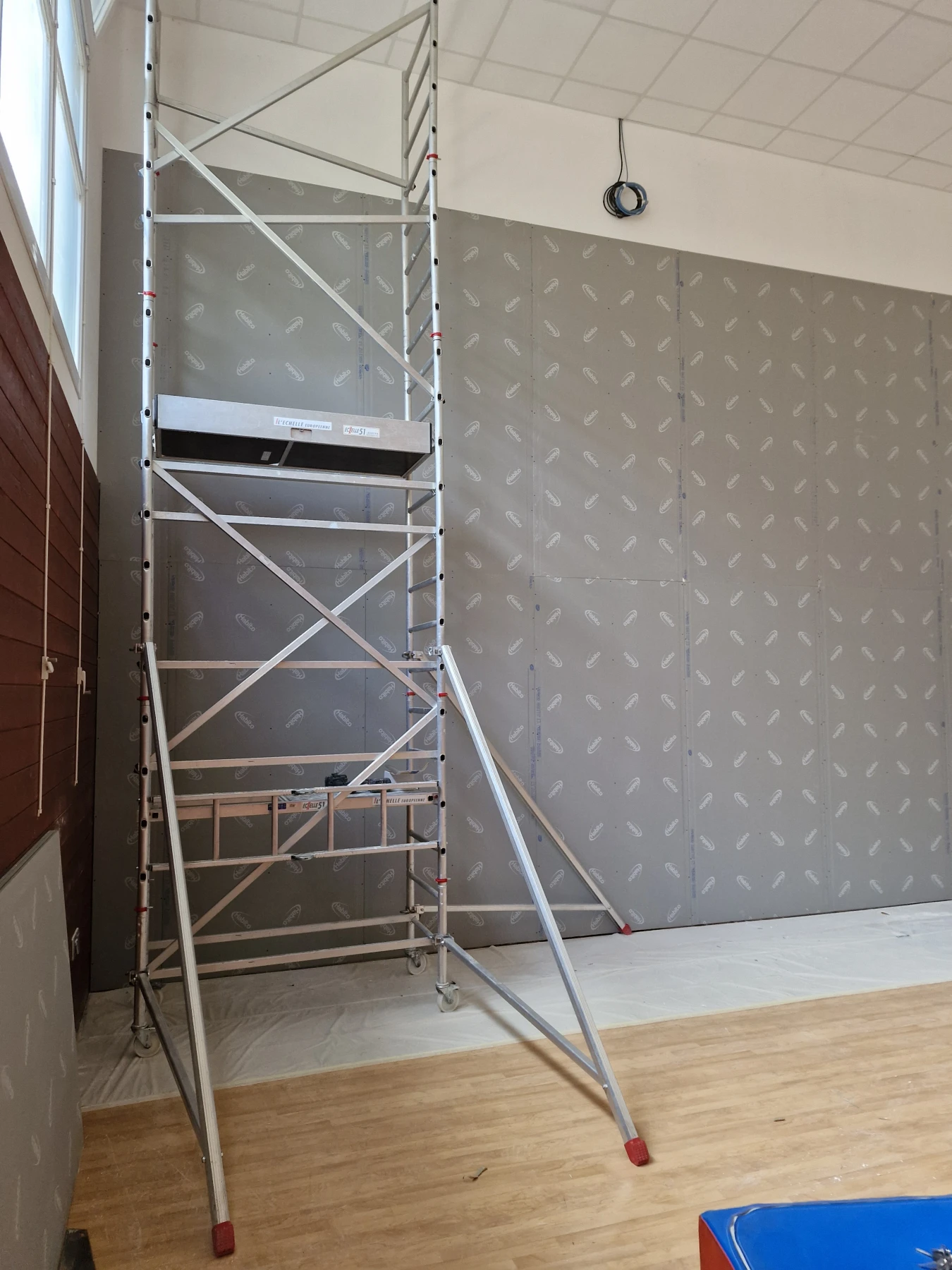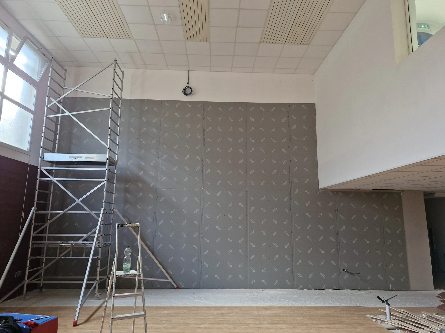 Dépose de l'ancienne Structure / Pose en 2 peaux de placo-plâtre, d'on une peau d'un placo-plâtre de type ( habito) pour un renfort optimal solidité incroyable . hauteur presque 8m.