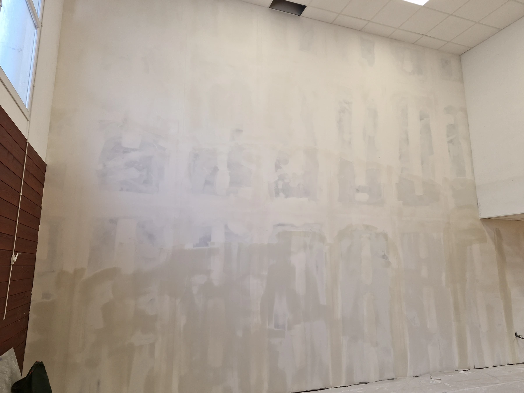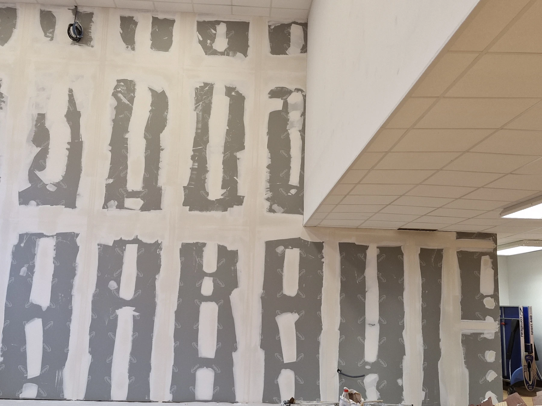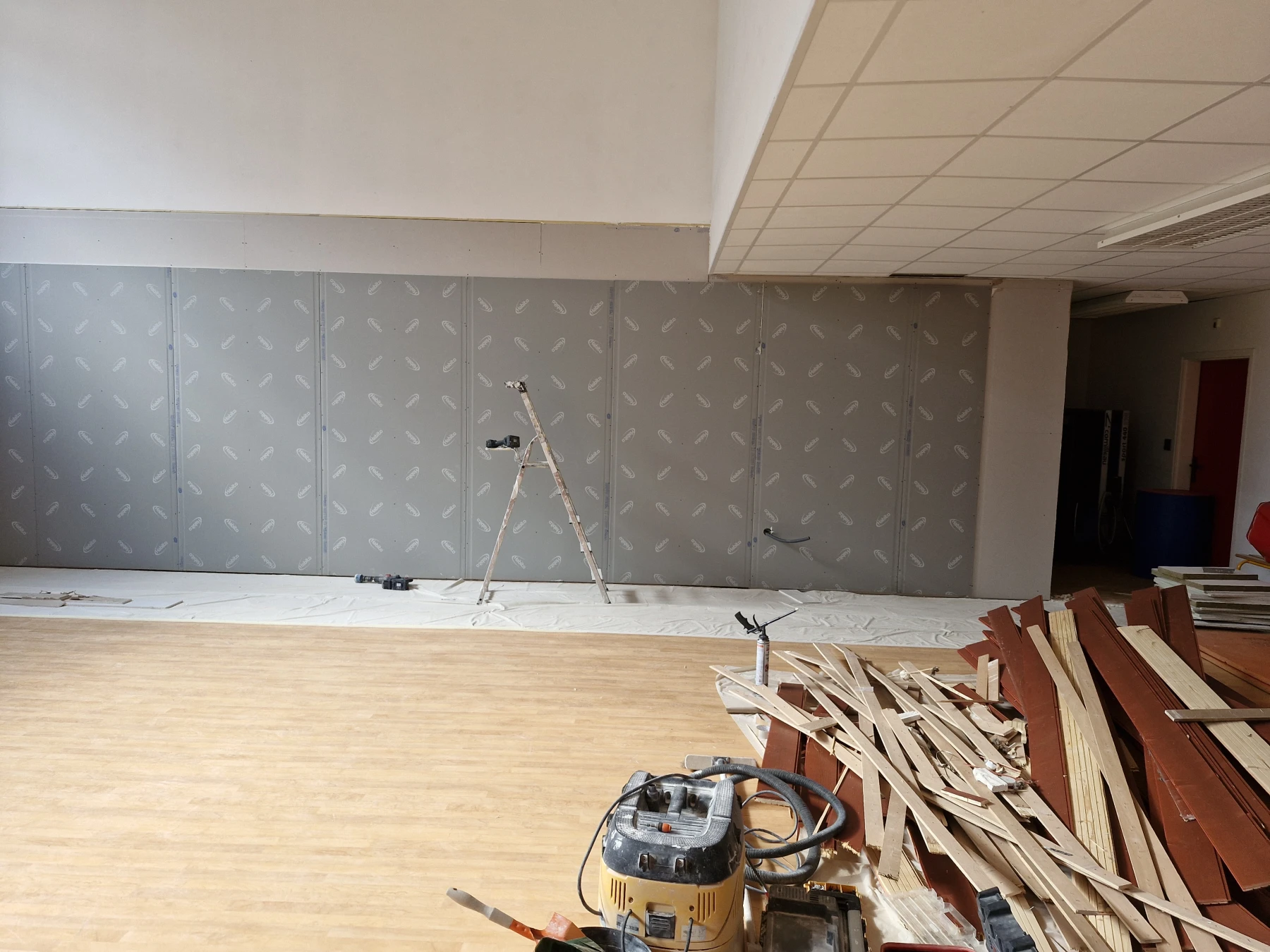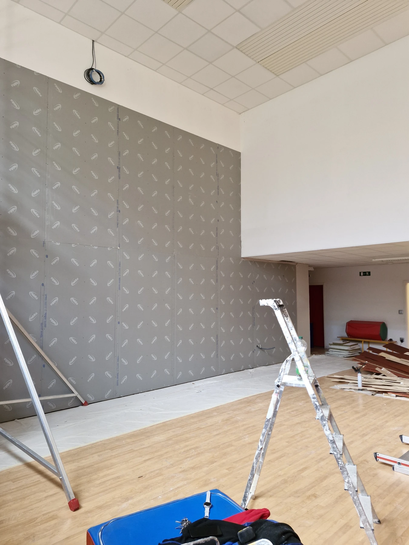 Dépose de l'ancienne Structure / Pose en 2 peaux de placo-plâtre, d'on une peau d'un placo-plâtre de type ( habito) pour un renfort optimal solidité incroyable . hauteur presque 8m.